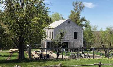Inspirée des bâtiments de ferme des Cantons de l’Est, la coach house se veut un exercice de simplification architecturale. La maison originale était en fait composée d’un garage triple surmonté de l’appartement du gardien.