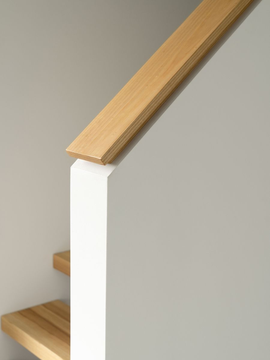 À l’intérieur, les espaces de jour sont organisés autour du bloc central qui regroupe le mudroom, la cuisine, le garde-manger et la salle d’eau. Le volume blanc s’appuie sur le corridor du 2e étage qui dessert les chambres et le petit boudoir.