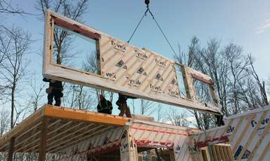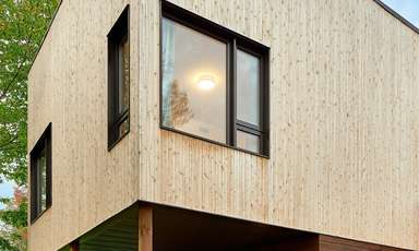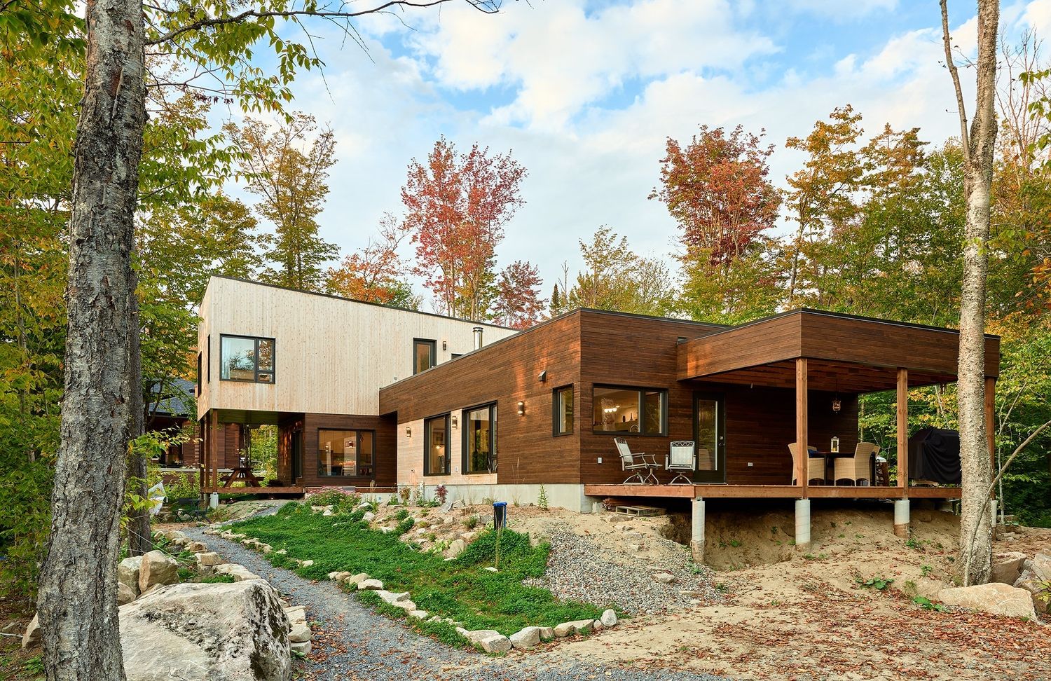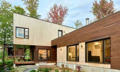 Cette magnifique maison est située en banlieue de Québec, à Stoneham-et-Tewkesbury. Conçue en respect des principes du design solaire passif, cette habitation maximise les gains solaires et permet l’accumulation de chaleur dans la masse thermique de la chape de béton en hiver. Avec son revêtement extérieur en bois et son enveloppe performante, la maison est aussi certifiée Novoclimat.
