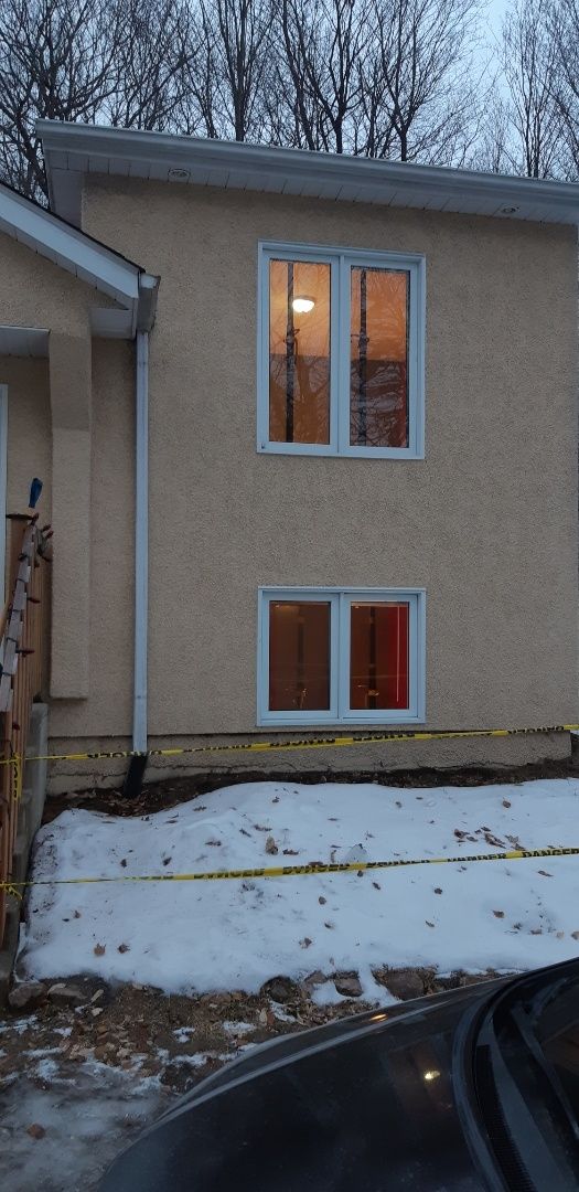 sur ce projet l'infiltration d'eau a déterioré le mur extérieur ( mur nin , solive de rive, ainsie que le mur adjancent a la toiture. Les travaux ont été réaliser dans deux chambre, espace de rangement sous l'entré ainsie que le garde robe de l'entré principale. la structure du batiment a été soutenu a partire de la dalle du sous sol dans le but de suporter les deux section de chevron de la toiture une étant cathédrale l'autre horizontale. la particularité de ce projet est la présence de revêtement d'agréga a l'extérieur. les travaux ont été réaliser sans endommager le revêtement , toiture ainsie que les portes et fenêtres. Ce projet est un autres belle exemple ou l'environement et le budget ont été bien servie !
