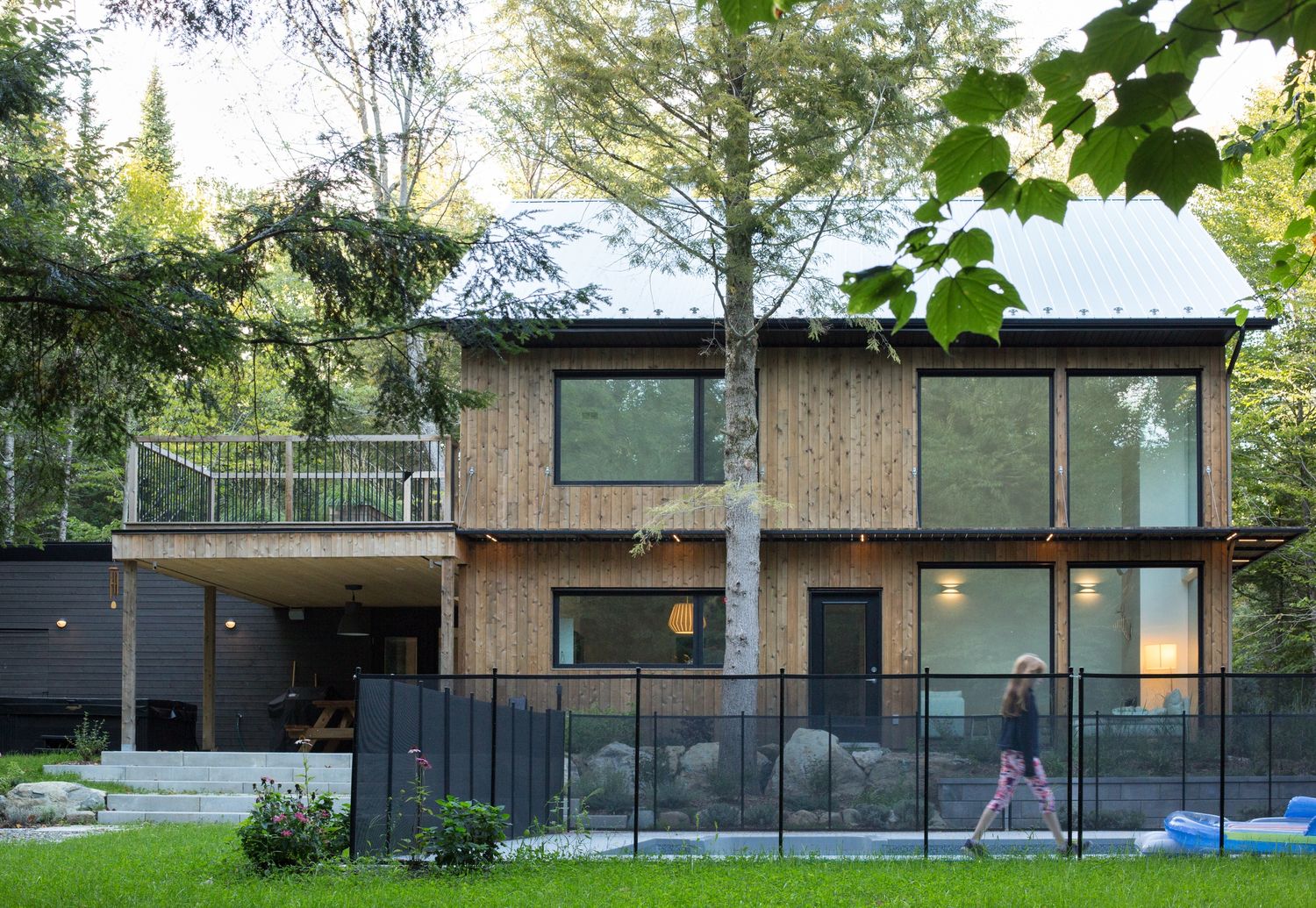 Bienvenue dans la Gey-Gailleur, maison secondaire pour une famille européenne dessinée et construite par UrbanÉco au cœur d’une forêt, à Eastman.