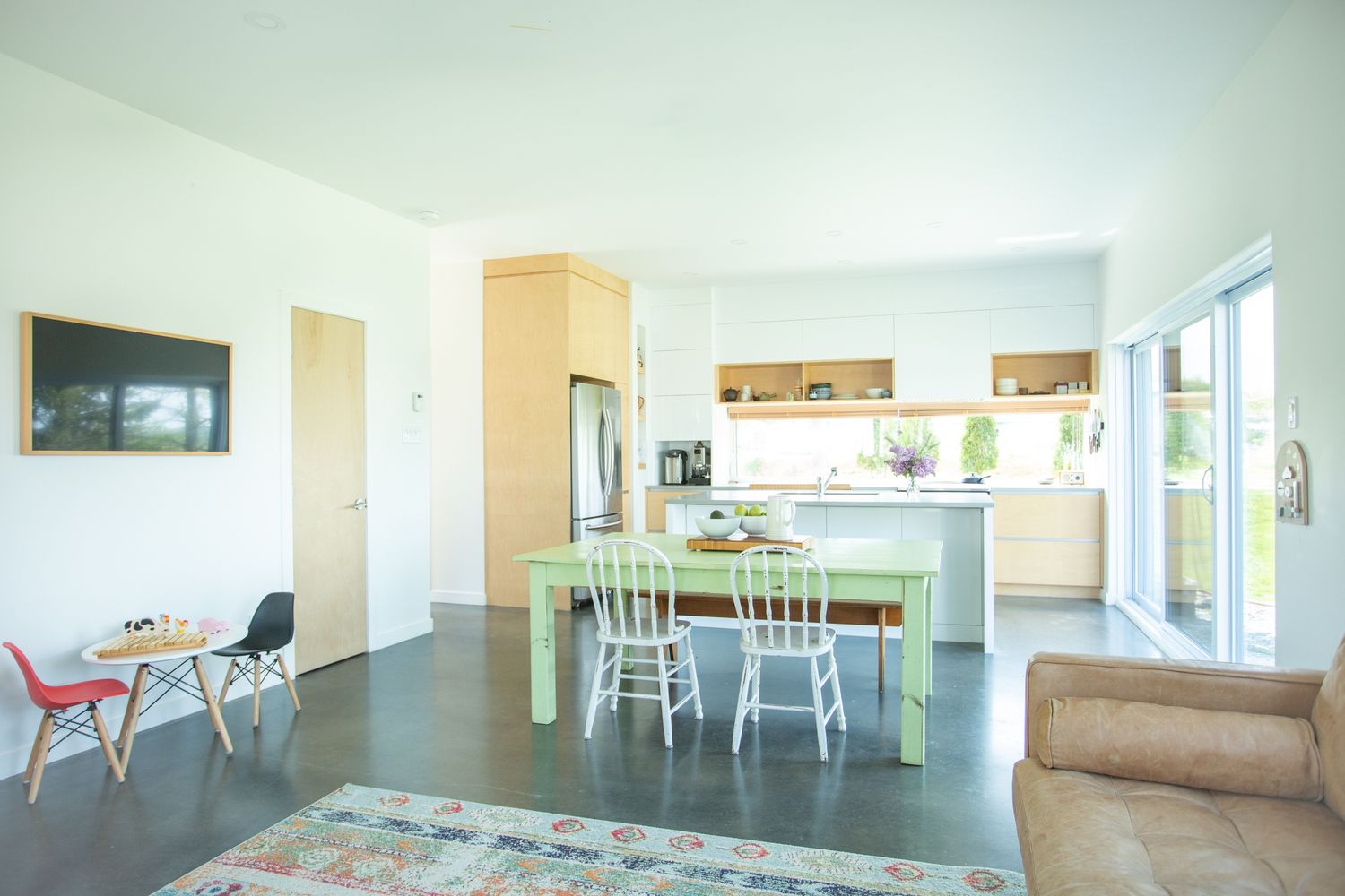 Bienvenue dans le cocon familial des Lacroix-Durocher, cette réalisation certifiée LEED accueille aujourd’hui les cinq membres de la famille. C’est avec beaucoup de confiance envers notre équipe que cette maison a été conçue à distance avec les deux propriétaires travaillant au nord du Québec. La disposition de la maison a été pensée avec soin tout en respectant le terrain et le pommier bien mature qui s’y trouvait. Les deux étages de la maison abritent trois chambres, deux salles de bain et une dalle de béton comme plancher chauffant afin de bien convenir au tout petit se promenant à quatre pattes. Le tout construit avec des matériaux nobles et dans une optique minimaliste et scandinave, nous pouvons retrouver plusieurs éléments qui rappellent cet esthétisme, dont les garde-corps des escaliers qui ont été dessinés et réalisés afin de convenir parfaitement à l’atmosphère de ce nid douillet. Pour accompagner le tout, la maison a une vue exceptionnelle sur un champ avec coucher de soleil, et ce à quelques minutes de la ville, dans un quartier résidentiel.