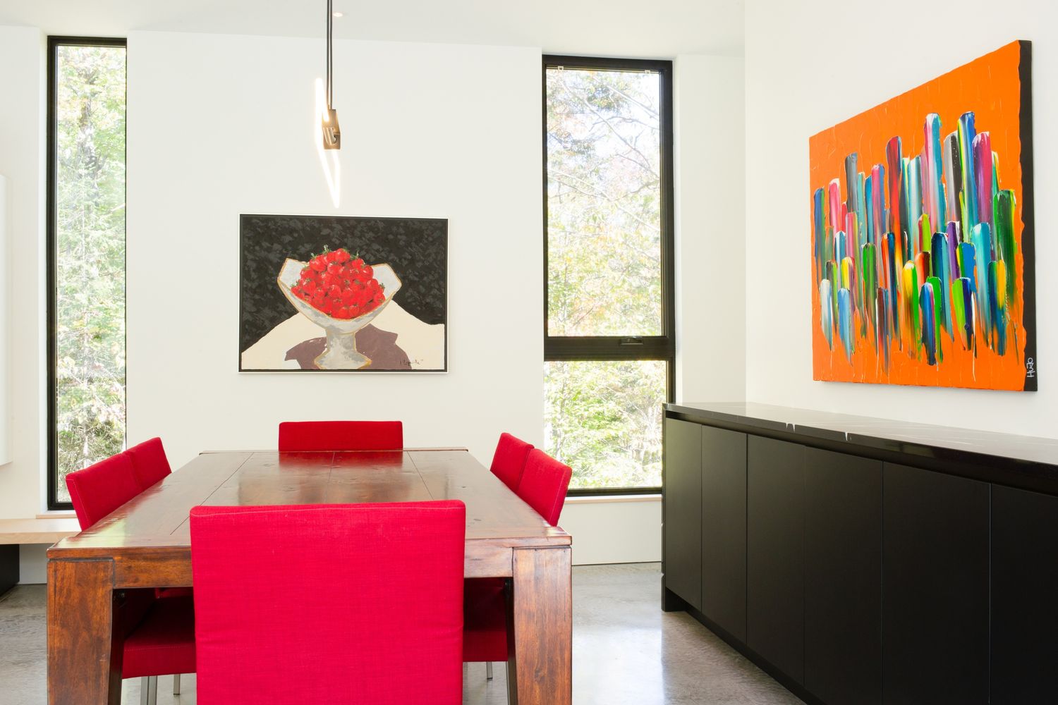 Cette maison est la toute première réalisation d’UrbanÉco au Lac Parker. Conçue sur mesure et construite pour un couple, elle comporte 2 015 pieds carrés incluant le garage. Le revêtement extérieur en cèdre de l’Ouest lui permet de s’harmoniser avec élégance à la naure environnante.