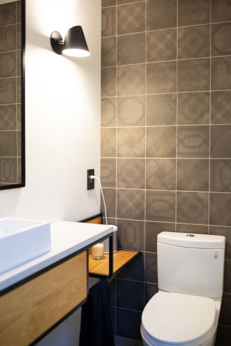 À l’intérieur, on y retrouve deux chambres, un bureau et une salle de bain au rez-de-chaussée, puis la cuisine, la salle à manger, le salon et une salle d’eau à l’étage. Un toit-terrasse vient compléter cette magnifique demeur