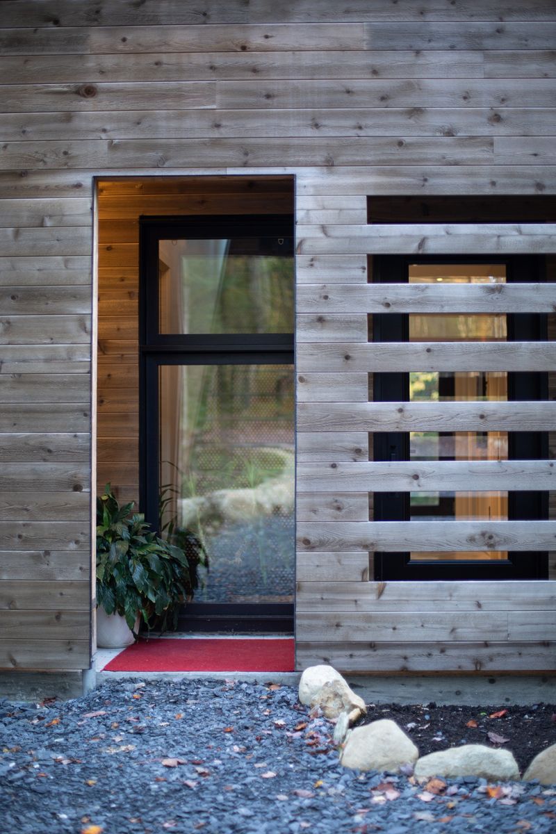 Cette maison est la toute première réalisation d’UrbanÉco au Lac Parker. Conçue sur mesure et construite pour un couple, elle comporte 2 015 pieds carrés incluant le garage. Le revêtement extérieur en cèdre de l’Ouest lui permet de s’harmoniser avec élégance à la naure environnante.
