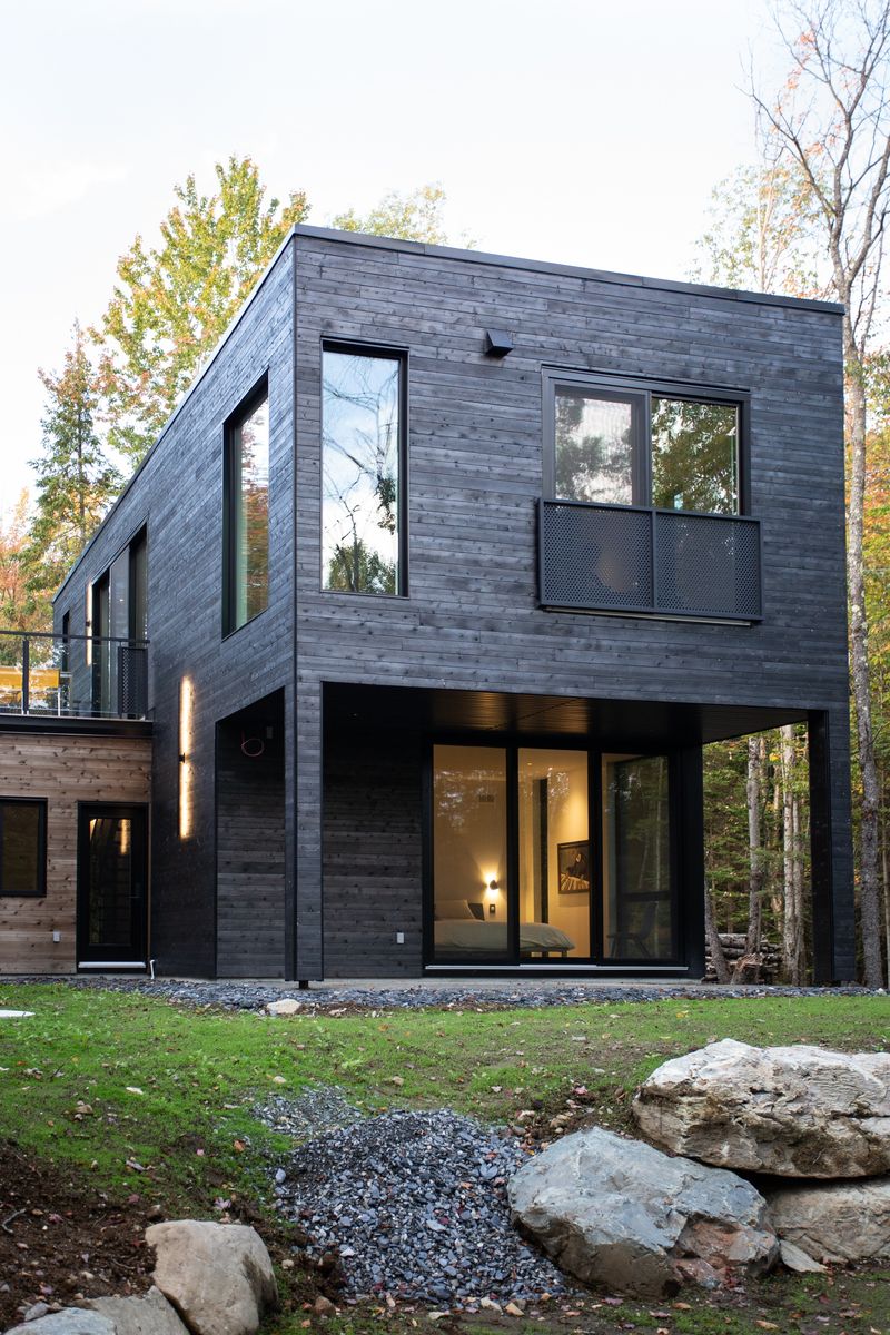 Cette maison est la toute première réalisation d’UrbanÉco au Lac Parker. Conçue sur mesure et construite pour un couple, elle comporte 2 015 pieds carrés incluant le garage. Le revêtement extérieur en cèdre de l’Ouest lui permet de s’harmoniser avec élégance à la naure environnante.