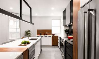 On devait imaginer un espace fonctionnel à l’image de nos clients, des passionnés de cuisine qui travaillent à la maison, et combler leur désir d’annexer la chambre principale à une salle de bain très design. En plus de l’état vétuste du condo, on devait tenir compte du logement d’en dessous qui était aussi en rénovation. La collaboration était nécessaire pour assurer un processus fluide.