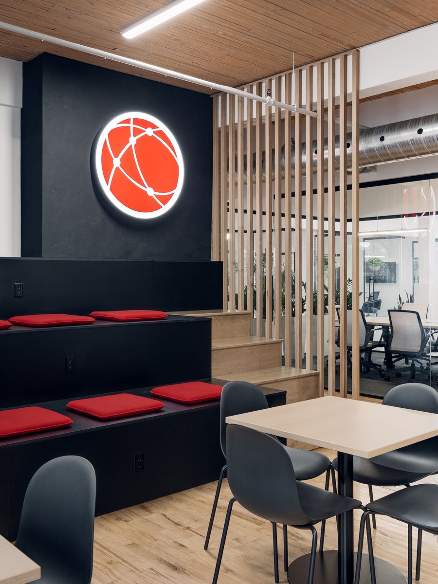 La compagnie Web Hosting Canada a mandaté la Maison Fauves pour concevoir ses nouveaux bureaux dans la Petite-Italie. Ayant ouvert l’année passée pendant la pandémie pour accueillir sa quinzaine d’employés, les aménagements s’adaptent à la réalité du télétravail avec ses bureaux en libre-service. Le projet propose une configuration polyvalente grâce à des locaux vitrés en version solo, duo, ou en groupe. Les espaces fermés et ouverts répondent aux besoins d’intimité, de concentration ou d’échanges de l’équipe. Le hall d’accueil mise sur la collégialité avec son estrade offrant différentes expériences d’assises dans l’espace commun. L’aménagement a été pensé pour une progression en douceur vers des espaces plus privés. Le choix des couleurs est à l’image du logo rouge et blanc de la compagnie. Le noir apporte présence et prestance à une palette claire et lumineuse. Maison Fauves préserve le cachet industriel de cette ancienne manufacture de textile, tout en apportant chaleur et fonctionnalité. Les espaces sont agréables avec une salle de jeux, des hamacs et des fauteuils aux parois de feutres. Le bois et les plantes s’invitent dans l’espace, agissant comme séparateur et élément de fraicheur. Un retour au bureau facilité!