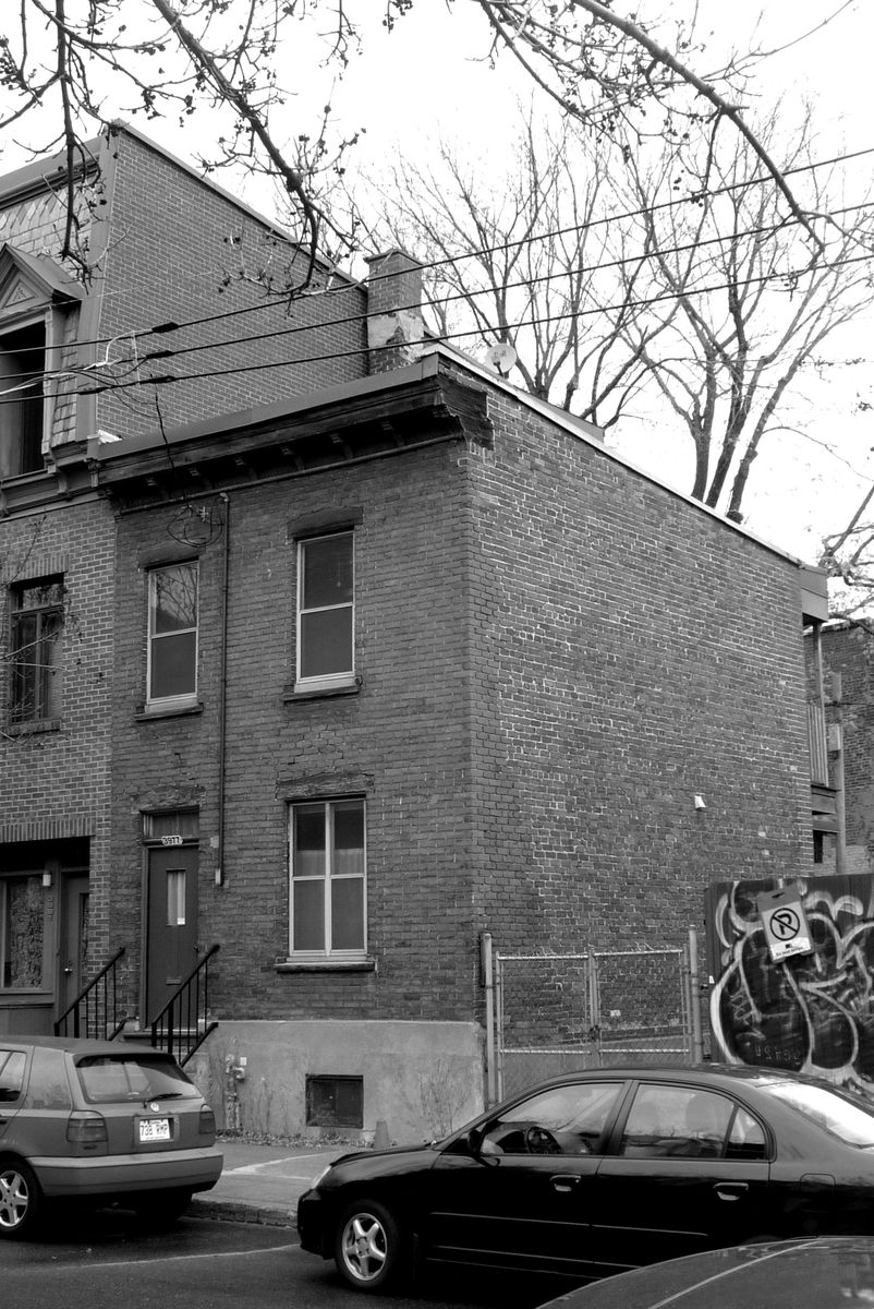 Ce projet d’ajout est développé sur un petit cottage de deux étages datant du début du dernier siècle, comportant plusieurs composantes caractéristiques des bâtiments de l’époque. La conception d’ajouts au troisième étage, sur le côté et à l’arrière de la maison, visent à mettre en valeur ces composantes historiques tout en dotant les ajouts d’une identité moderne en dialogue avec le bâtiment d’origine. La palette des matériaux choisis pour les ajouts met en relief la tension historique entre existant et nouveau par l’utilisation d’un revêtement d’acier de teinte charbon ayant comme fond la brique rouge d’origine du cottage. L’aménagement intérieur des 3 niveaux se définit autour d’un escalier central qui par sa position ordonne spontanément les fonctions des aires de planchers et rythme la façade latérale. Les composantes structurales requises pour ces ajouts sont exposées et renforcent à leur tour la définition des espaces intérieurs. En contraste avec les espaces existants de la maison qui étaient peu éclairés, les ajouts assurent un approvisionnement généreux en clarté de tous les espaces et permettent la création d’ouvertures qui cadrent des vues sur le Mont-Royal.