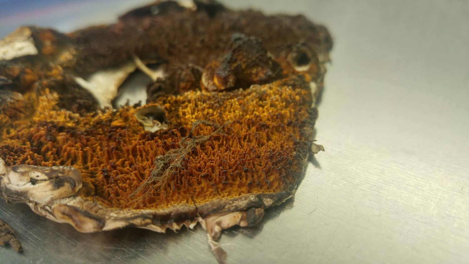 On a constaté qu'une chambre froide était fortement endommagée par un champignon lignivore appelé "mérule pleureuse" (ou "Serpula lacrymans" en latin), connu pour provoquer la "pourriture sèche" du bois (également appelée "pourriture cubique").