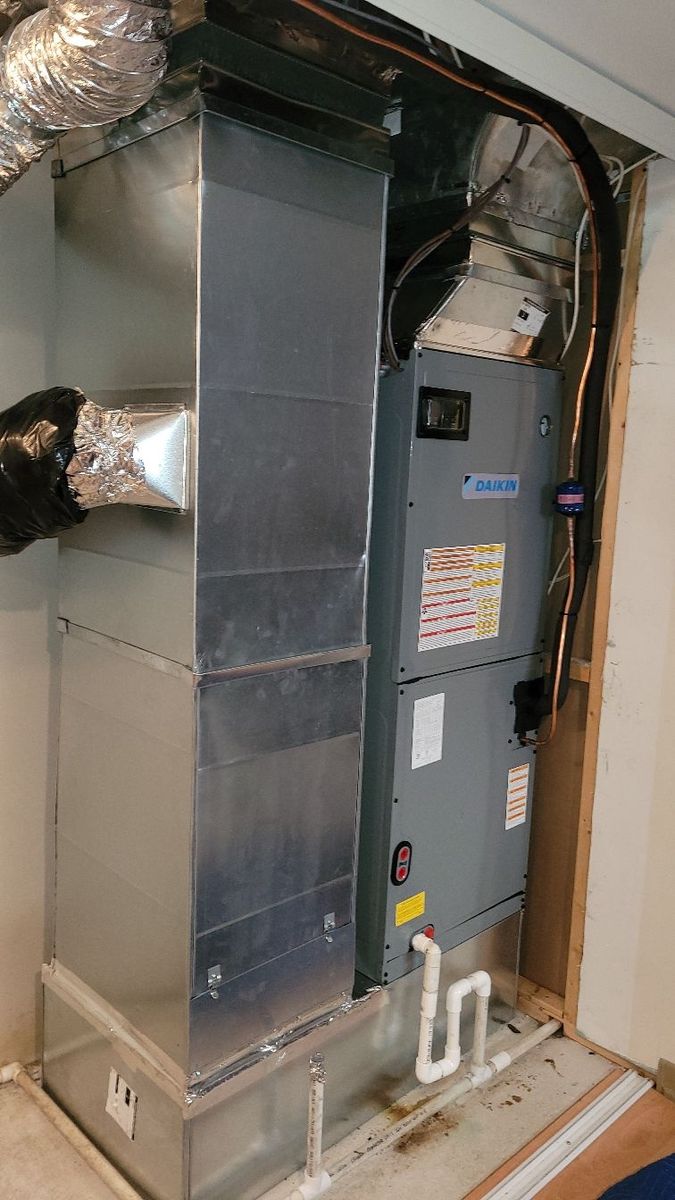 Encore une belle installation de nos deux techniciens certifiés Samuel et François ! Ils ont installé une thermpompe haute efficacité énergitique en replacement d'un système déshuet. L'unité extérieur de la Daikin Fit, en plus d'être plus silencieuse que les systèmes conventionnels, prend beaucoup moins d'espace dans votre environnement extérieur.