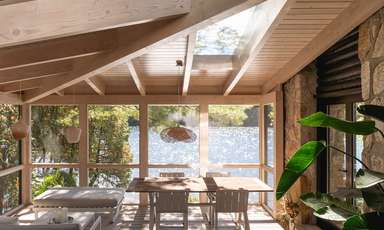 La nouvelle pièce moustiquaire installée du côté sud, munie de 2 puits de lumière insérés discrètement dans la structure, offre un autre endroit pour profiter de l’extérieur dans un espace baigné de la lumière naturelle qui se réfléchit sur l’eau.