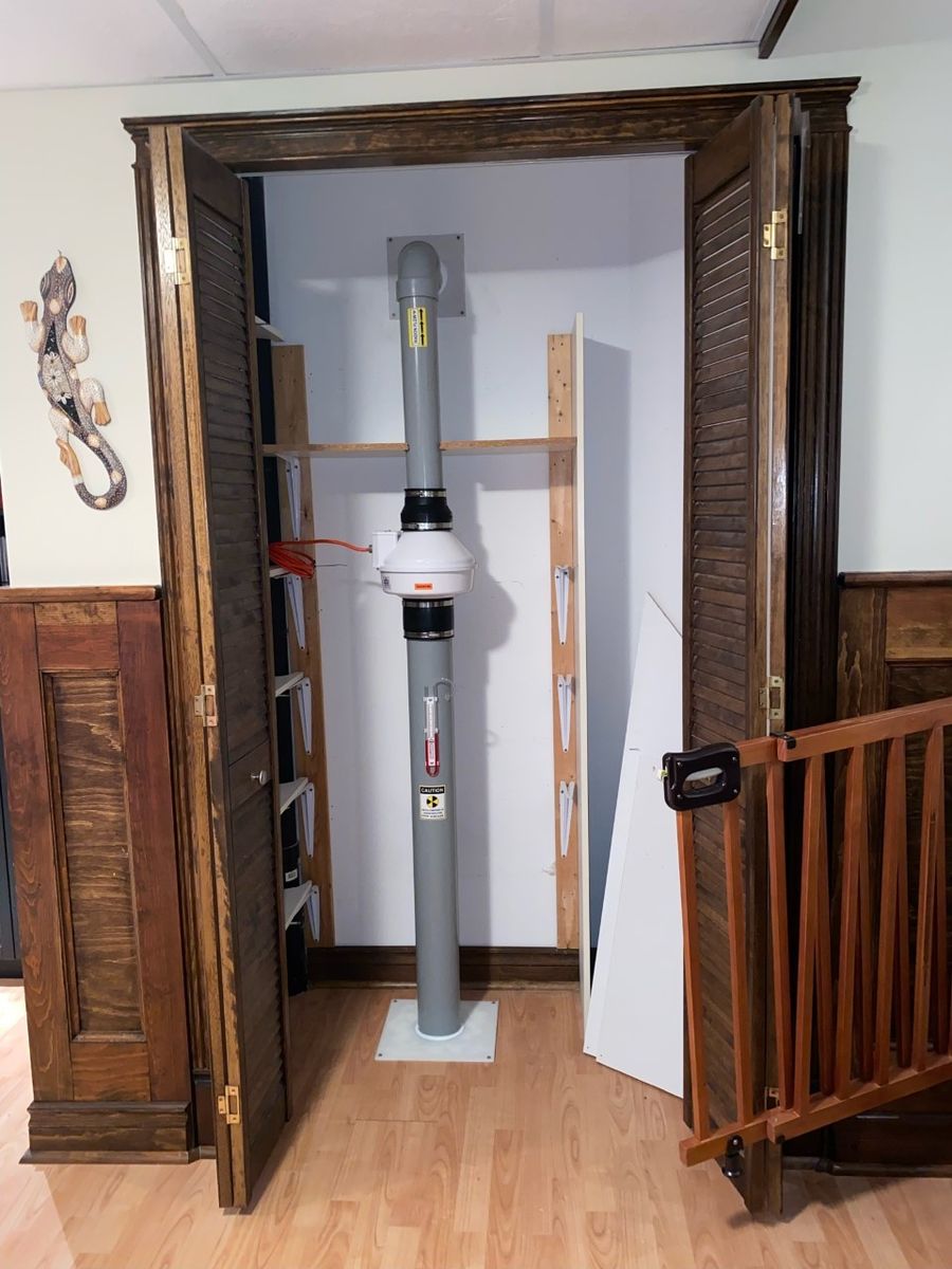 Installation dans un garde-robe. 3.4 po. de colonne d'eau. Recherches associées Couloir Montréal/Laval/Longueuil (Grand Montréal) Atténuation du radon Mitigation Radon