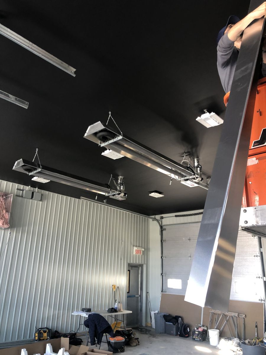 Installation d'un chauffage radiant chez un concessionnaire de la région Recherches associées Travaux - Intérieur Joliette (Lanaudière) Chauffage radiant Space ray