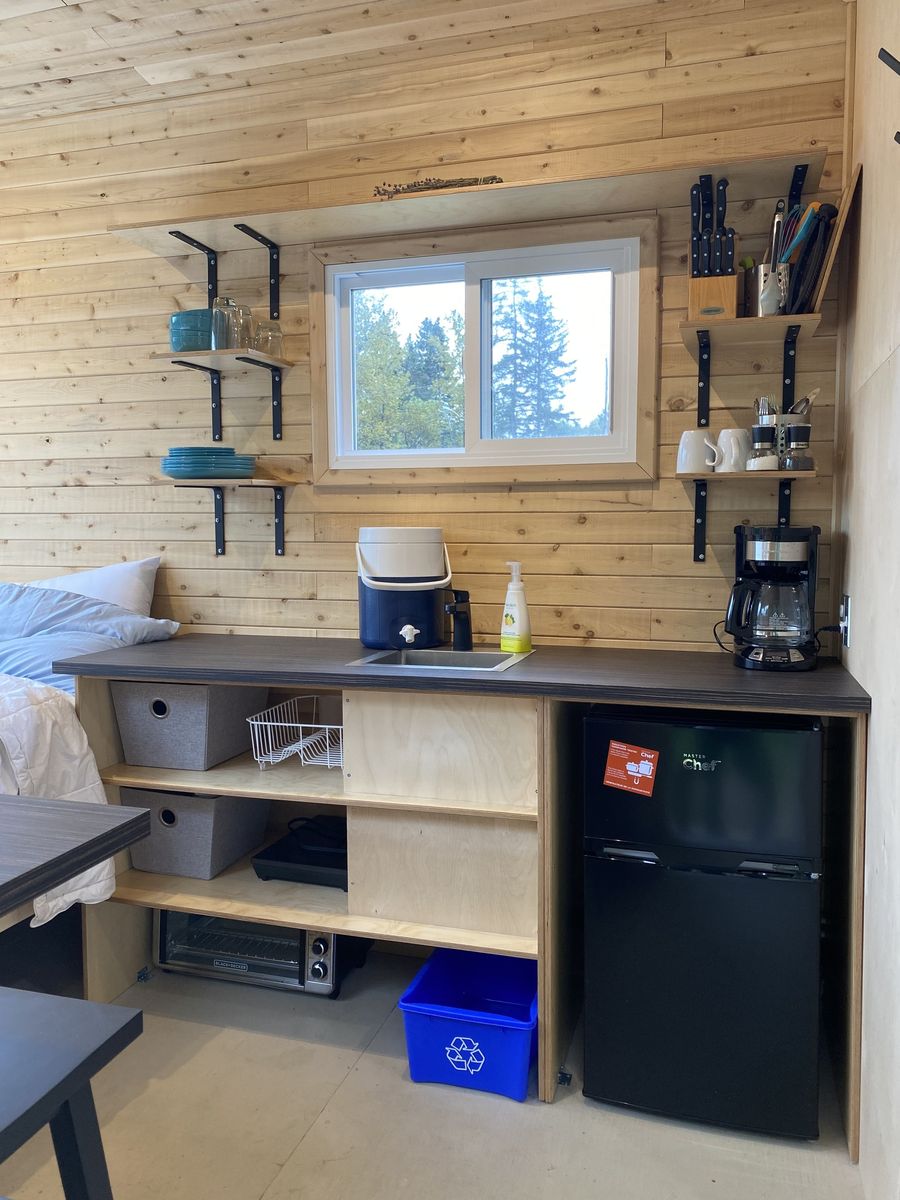 Micro-chalet tout inclus avec douche et lavabo, chauffe-eau à la demande et toilette au composte. Recherches associées Cuisine Rimouski (Bas-Saint-Laurent)