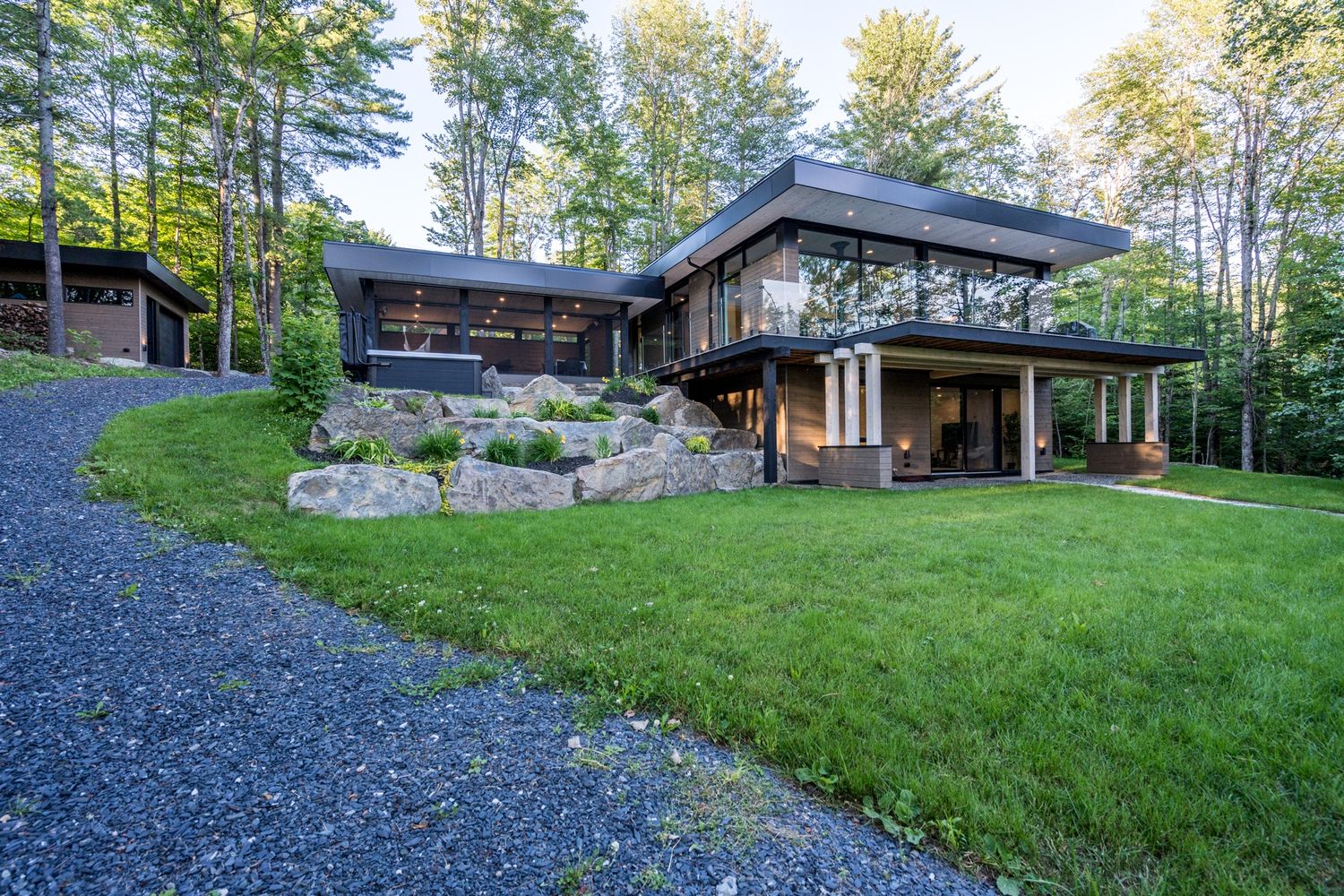 Un grand espace de vie sans colonne offre une vue de 180 degrés sur le lac et la forêt, assurant à ses occupants une connexion intime avec la nature.