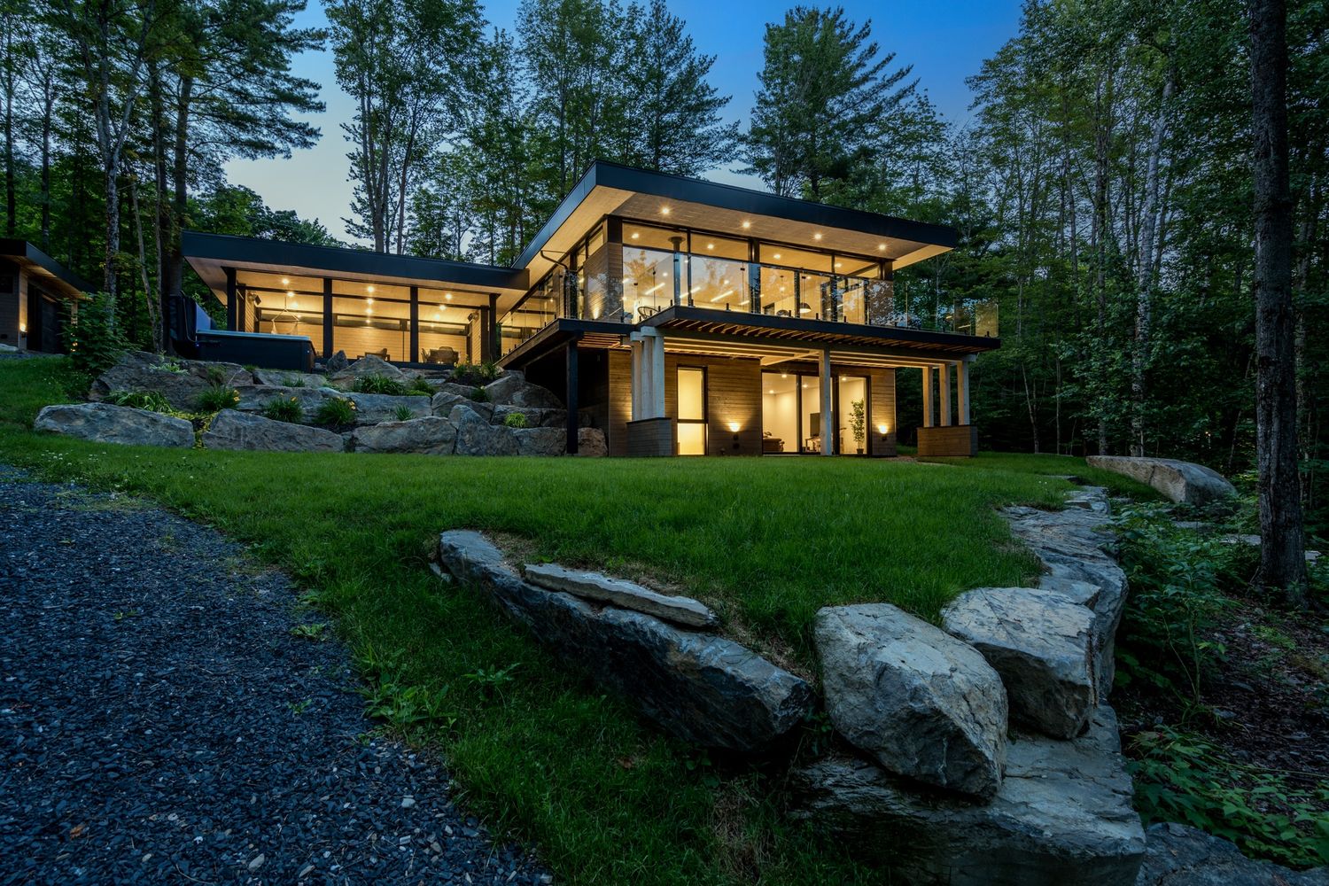 Le chalet est doté d'un toit isolé à haute valeur R, ce qui est supérieur aux exigences du code afin de minimiser l'impact écologique du bâtiment et d'offrir aux résidents un environnement intérieur durable et confortable.