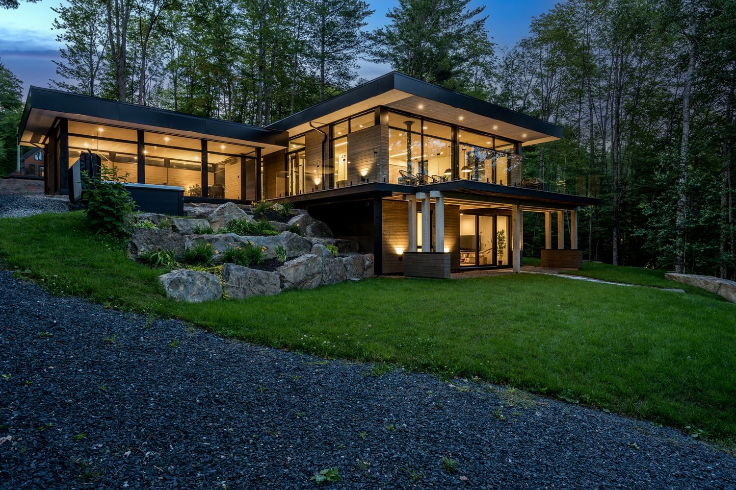 Le chalet est doté d'un toit isolé à haute valeur R, ce qui est supérieur aux exigences du code afin de minimiser l'impact écologique du bâtiment et d'offrir aux résidents un environnement intérieur durable et confortable.