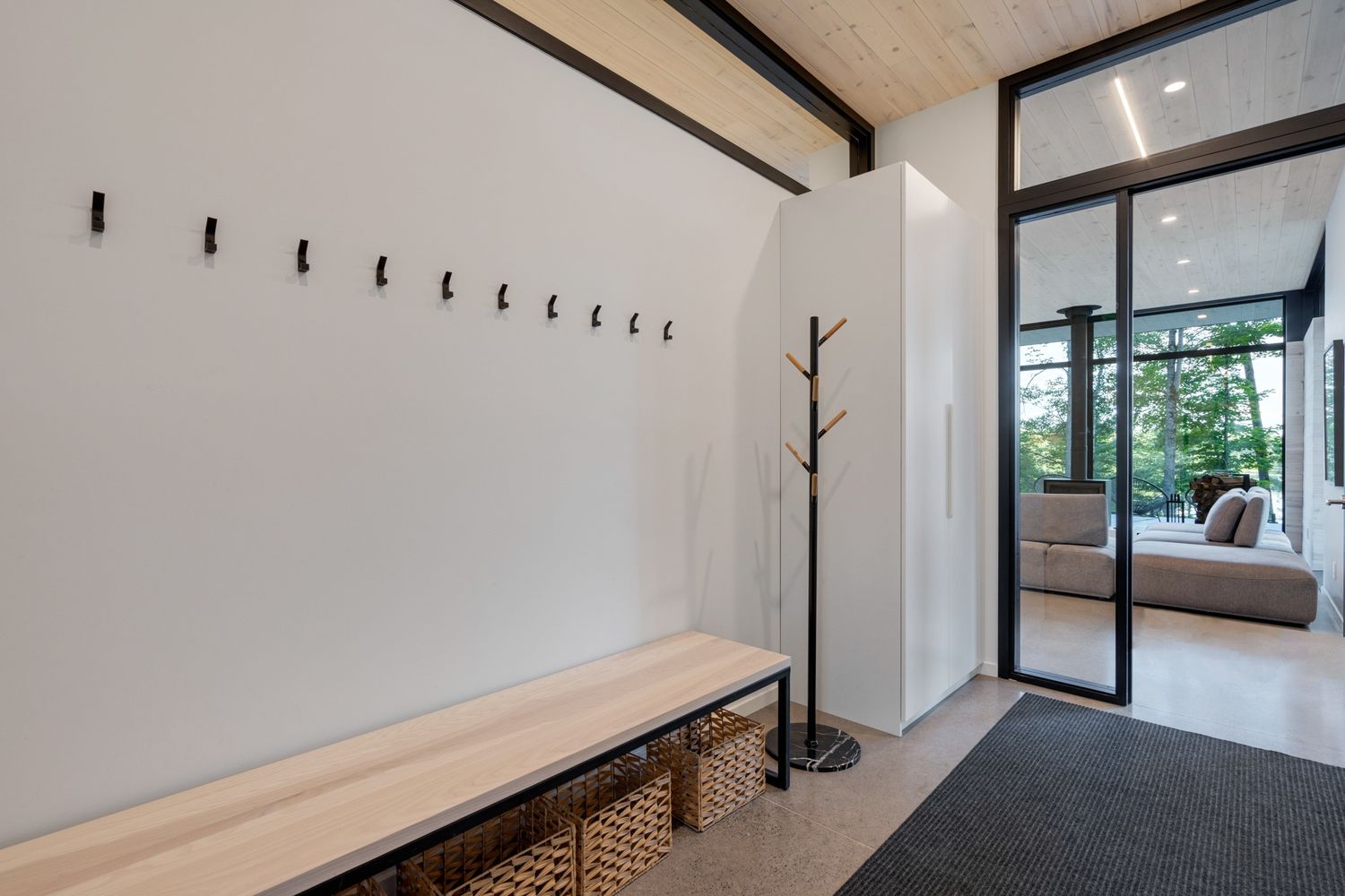 Un grand espace de vie sans colonne offre une vue de 180 degrés sur le lac et la forêt, assurant à ses occupants une connexion intime avec la nature.