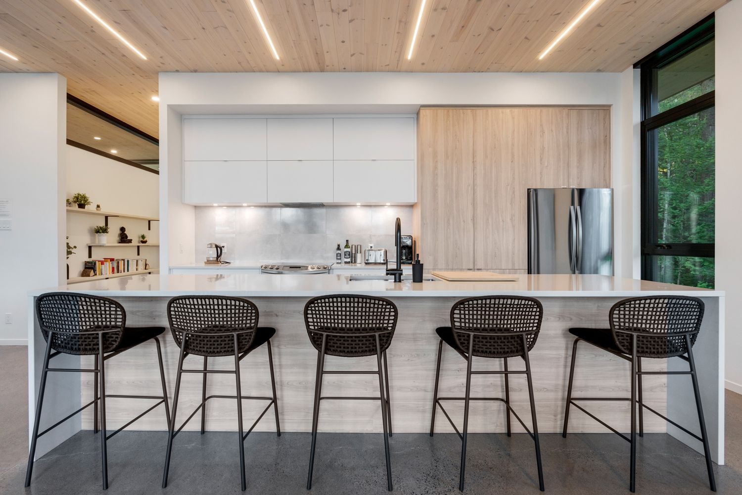 Le chalet est doté d'un toit isolé à haute valeur R, ce qui est supérieur aux exigences du code afin de minimiser l'impact écologique du bâtiment et d'offrir aux résidents un environnement intérieur durable et confortable.