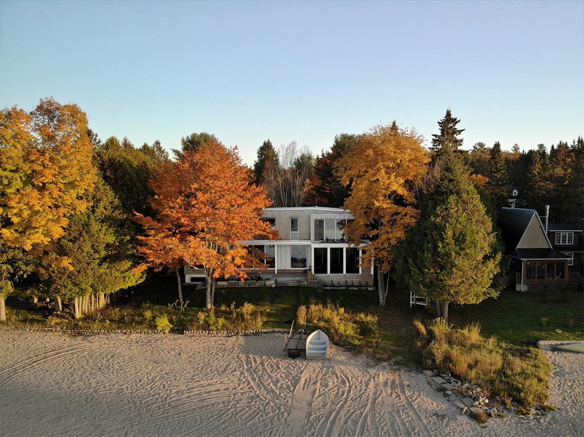 Le paysagement laisse la place aux espèces indigènes qui recouvrent la friche entre la maison et la plage. Du lac, la grande maison reste somme toute discrète, dissimulée derrière les grands érables matures.