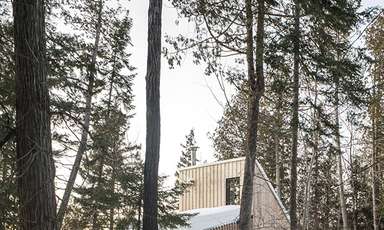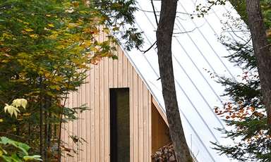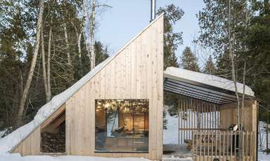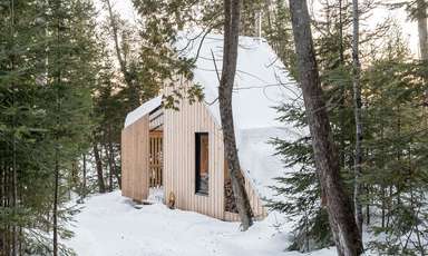 La Pointe est un microrefuge de prêt-à-camper conçu pour le Parc régional du Poisson Blanc, situé au nord d’Ottawa. Avec sa géométrie triangulaire, le refuge propose une réinterprétation du légendaire A-frame popularisé en Amérique du Nord dans les années 1950. Il était important pour les concepteurs de créer un objet simple, presque signalétique, qui offrirait des espaces fonctionnels et tournés vers la nature. Le petit bâtiment « off-the-grid », alimenté en électricité par un panneau solaire et capable d’accueillir deux à quatre personnes, a été bâti sur place en quelques semaines seulement par l’équipe de construction de L’Abri.