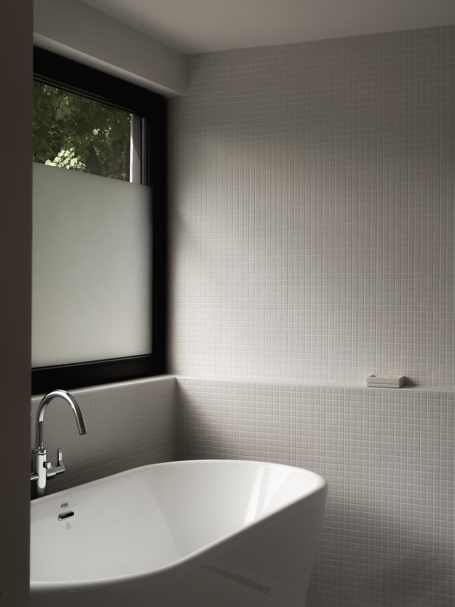 Le crépis et les panneaux d’aluminium blanc utilisés pour les revêtements extérieurs sont sobres et inspirés des matériaux utilisés à l’époque pour la construction de ces maisons ouvrières. La toiture de bardeau d’asphalte laisse place à un toit métallique. Les grandes fenêtres certifiées « maison passive » et orientées franc sud procurent une lumière généreuse et un chauffage passif à longueur d’année.