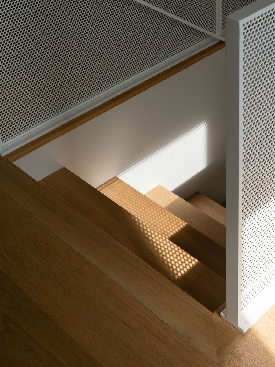Le crépis et les panneaux d’aluminium blanc utilisés pour les revêtements extérieurs sont sobres et inspirés des matériaux utilisés à l’époque pour la construction de ces maisons ouvrières. La toiture de bardeau d’asphalte laisse place à un toit métallique. Les grandes fenêtres certifiées « maison passive » et orientées franc sud procurent une lumière généreuse et un chauffage passif à longueur d’année.