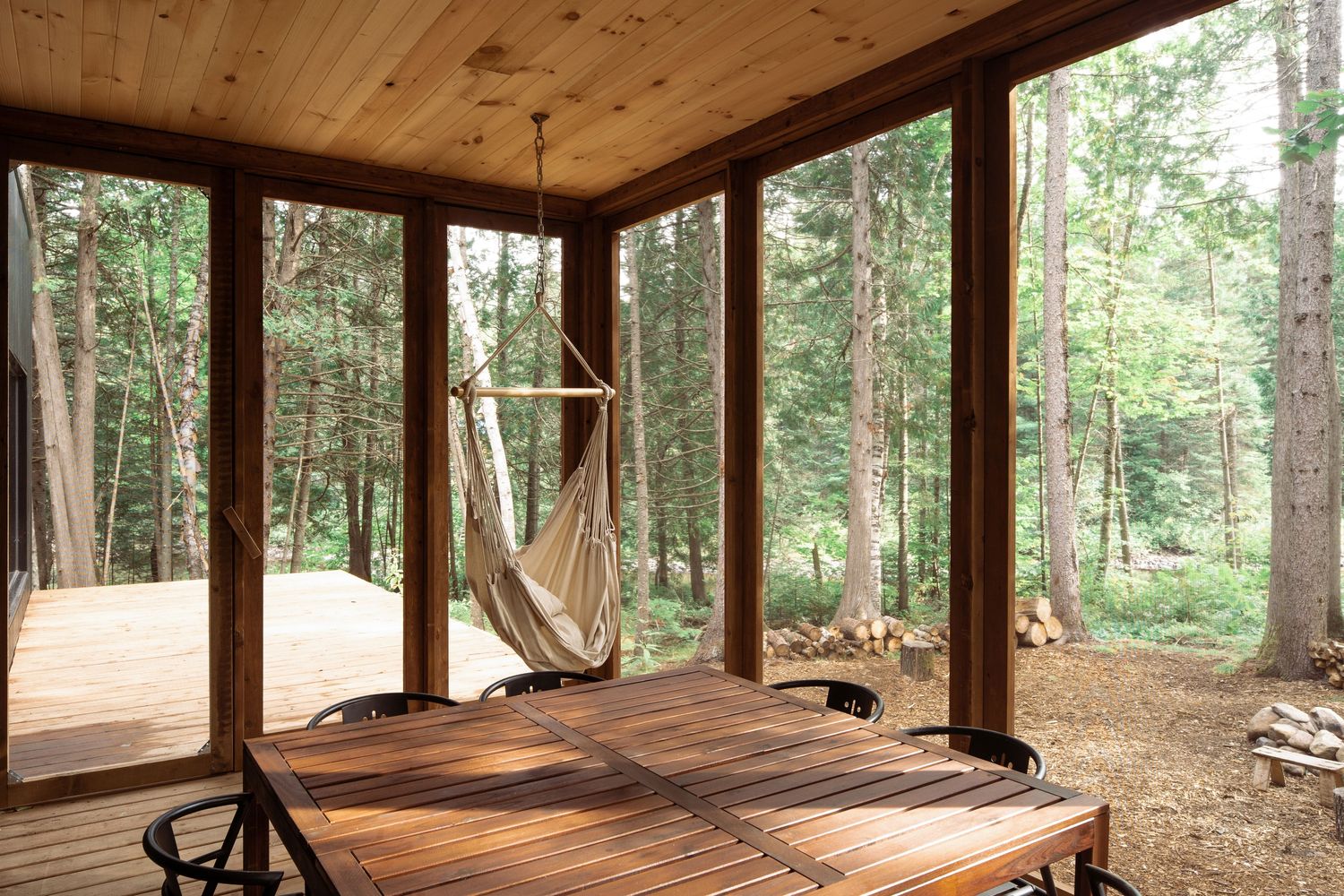 C’est au cœur d’une forêt mixte de bouleaux et de conifères, dans Lanaudière, que s’est construit le chalet La Croisée, résidence secondaire pour deux frères et leur famille. L’Abri a accompagné les propriétaires dans leur première autoconstruction. Une collaboration qui soigne son bilan carbone et vient se nicher avec respect et modestie au sein du territoire.