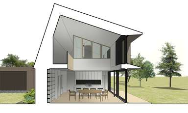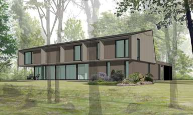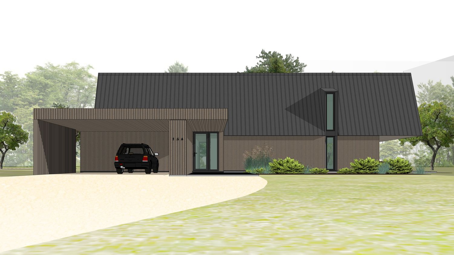 Une nouvelle maison pour un couple qui a été conçue pour répondre aux normes strictes de la maison passive en matière d'utilisation de l'énergie. La maison se compose d'un rez-de-chaussée ouvert pour profiter des vues sur le terrain adjacent vers le sud, où de grandes surfaces vitrées permettent au soleil du sud d'entrer et de chauffer le bâtiment pendant les mois les plus froids. Les espaces de travail, de couchage et de réflexion sont situés à l'étage. La façade nord comprend un abri d'auto et un jardin et présente une façade discrète et élégante, avec un minimum de vitrage pour favoriser l'intimité et minimiser les pertes de chaleur. La construction devrait être terminée au printemps/été 2023.