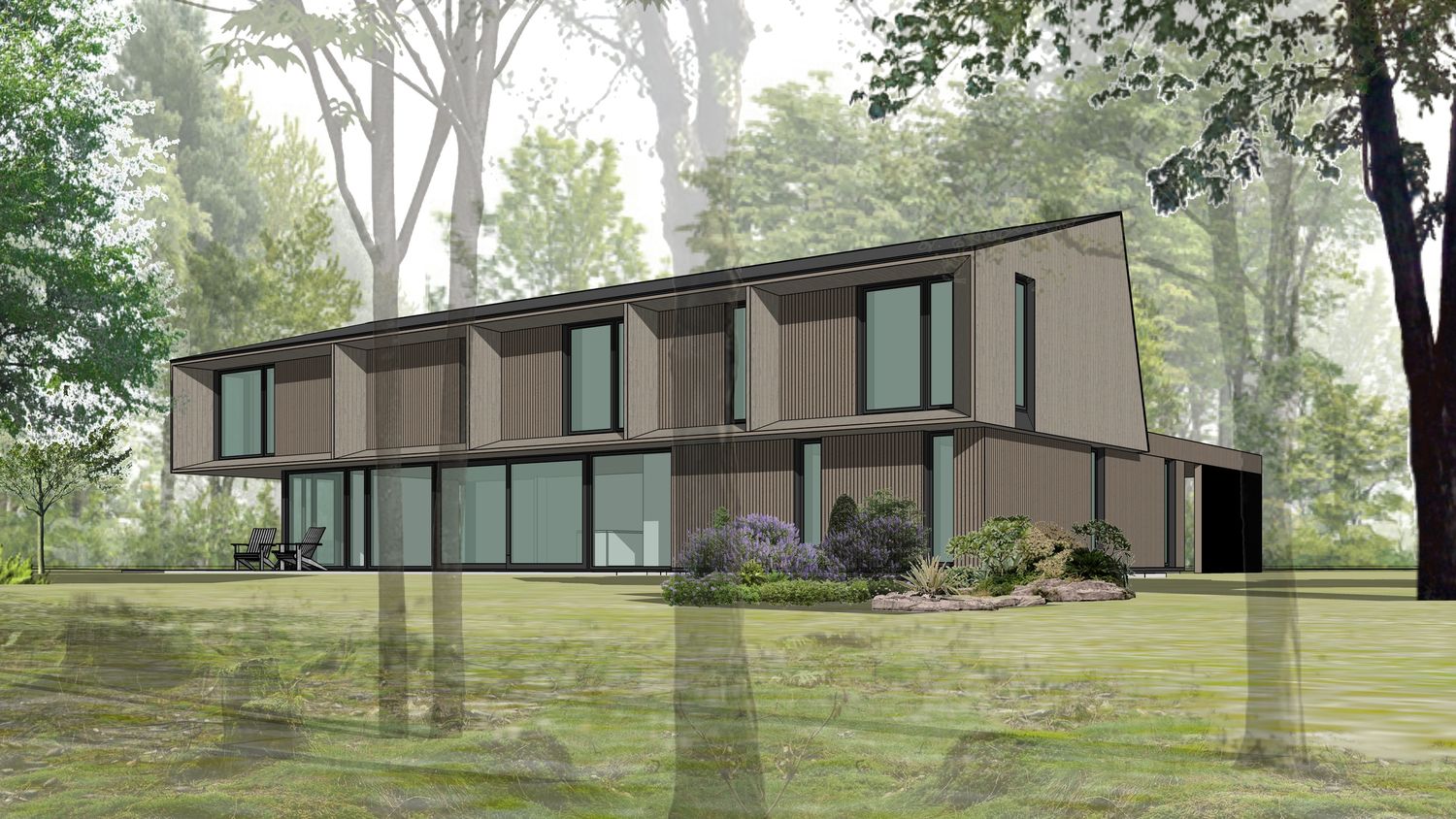Une nouvelle maison pour un couple qui a été conçue pour répondre aux normes strictes de la maison passive en matière d'utilisation de l'énergie. La maison se compose d'un rez-de-chaussée ouvert pour profiter des vues sur le terrain adjacent vers le sud, où de grandes surfaces vitrées permettent au soleil du sud d'entrer et de chauffer le bâtiment pendant les mois les plus froids. Les espaces de travail, de couchage et de réflexion sont situés à l'étage. La façade nord comprend un abri d'auto et un jardin et présente une façade discrète et élégante, avec un minimum de vitrage pour favoriser l'intimité et minimiser les pertes de chaleur. La construction devrait être terminée au printemps/été 2023.