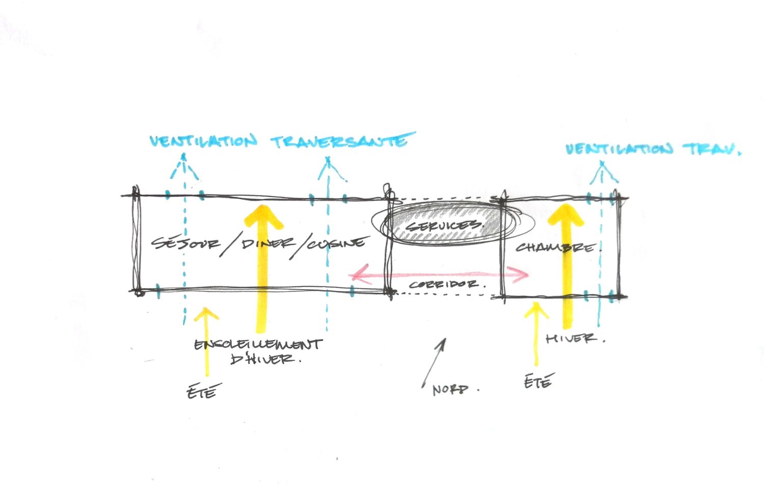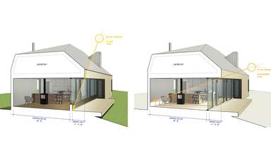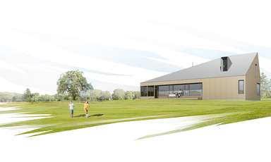 Située dans le canton de l'est de Fulford, cette maison écoénergétique se compose d'un volume compact qui intègre les principes de conception solaire passif pour économiser l'énergie. De grandes zones de vitrage offrent des vues imprenables vers le sud et la forme de la maison crée un profil saisissant dans le paysage rural.