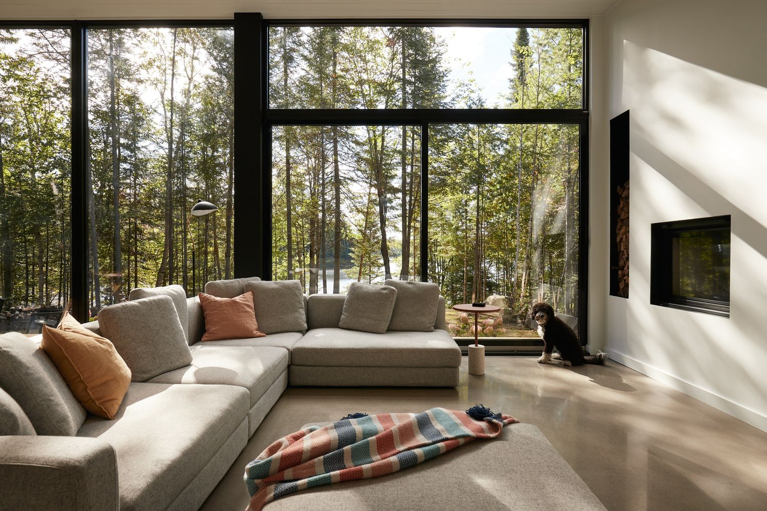 Le chalet du Lac Arthur, situé à Notre-Dame-de-la-Merci, à proximité de St-Donat était le lieu rêvé des propriétaires qui désiraient y construire un chalet sobre et moderne, intégré et respectueux de son environnement naturel.