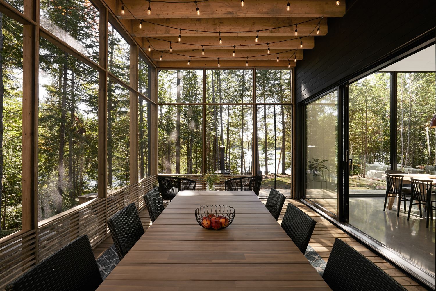 Le chalet du Lac Arthur, situé à Notre-Dame-de-la-Merci, à proximité de St-Donat était le lieu rêvé des propriétaires qui désiraient y construire un chalet sobre et moderne, intégré et respectueux de son environnement naturel.