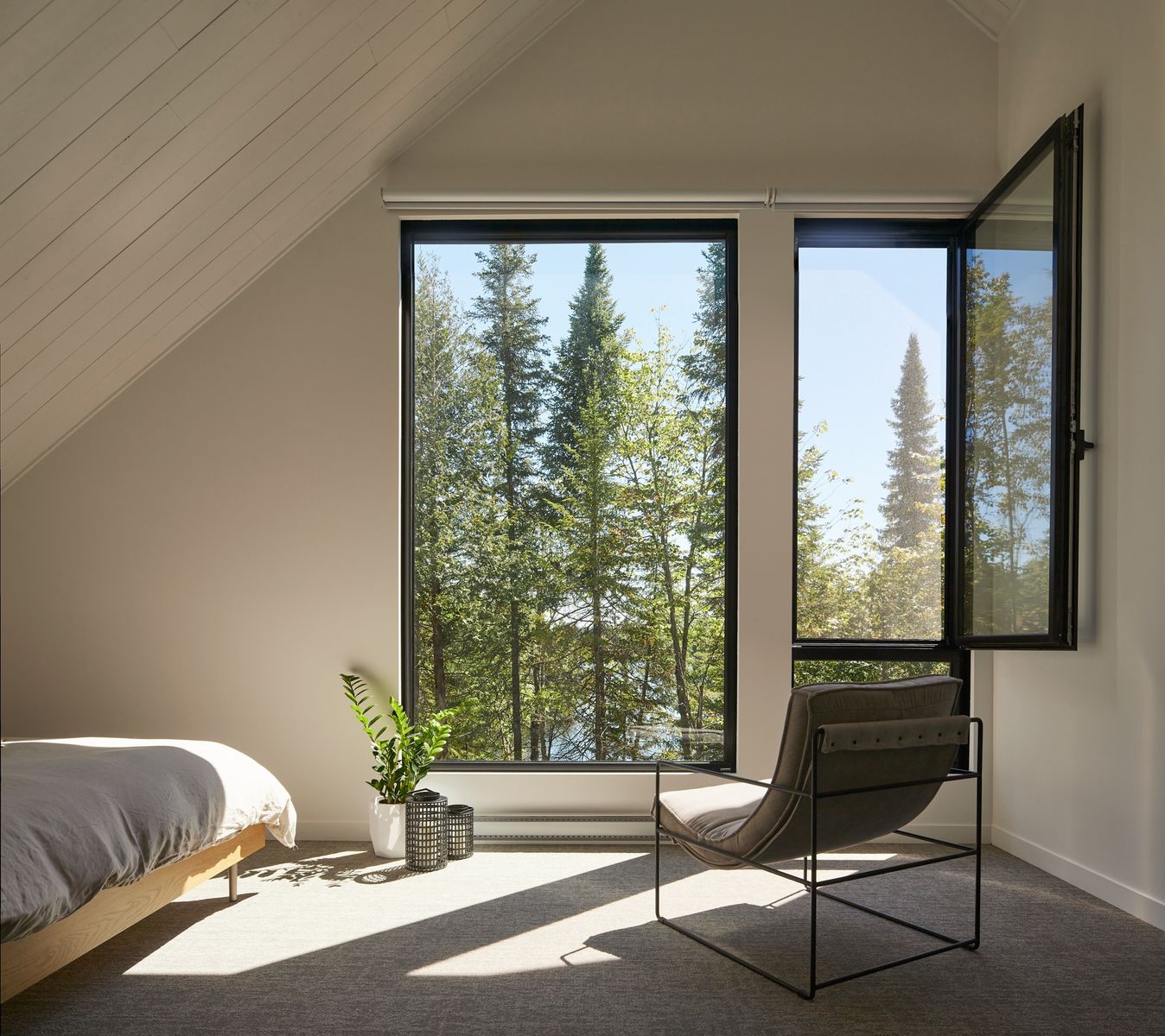 Le chalet du Lac Arthur, situé à Notre-Dame-de-la-Merci, à proximité de St-Donat était le lieu rêvé des propriétaires qui désiraient y construire un chalet sobre et moderne, intégré et respectueux de son environnement naturel.