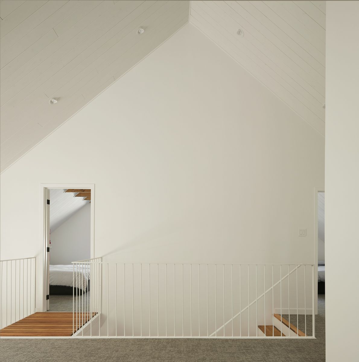 La couleur noire a été choisie pour dissimuler la maison dans la forêt dense, telle une ombre discrète. Un maximum d'arbres a été préservé.