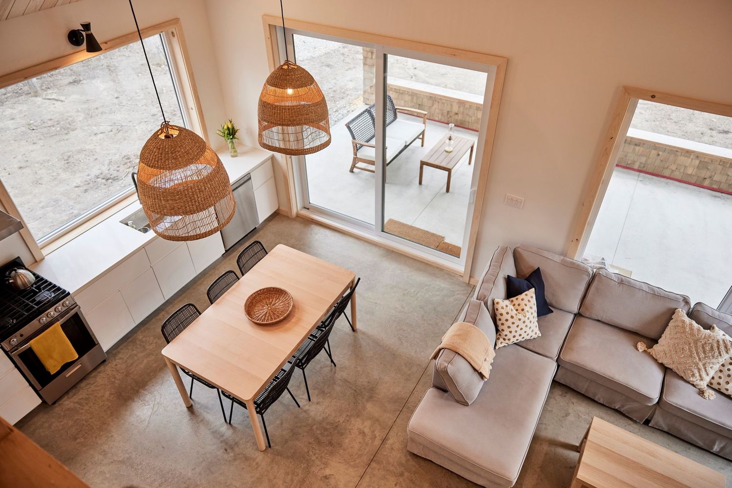 Chaleureuse construction construite en panneau SIP sur un terrain boisé du Lac Brome. Elle comporte 2 chambres à coucher et une salle de bain pour un total de 5 pièces sur un seul niveau de 865 pi.ca. On apprécie son design architectural unique en symbiose avec la nature. La cuisine, la salle à manger et le salon constituent une accueillante aire ouverte qui bénéficie d’une vaste fenestration, d’un foyer au gaz et d’un joli plafond cathédrale en bois. On a un coup de coeur pour sa terrasse recouverte et sa mezzanine ludique et magnifiquement aménagée. Tout a été penser pour favoriser les vues, le confort et le budget !
