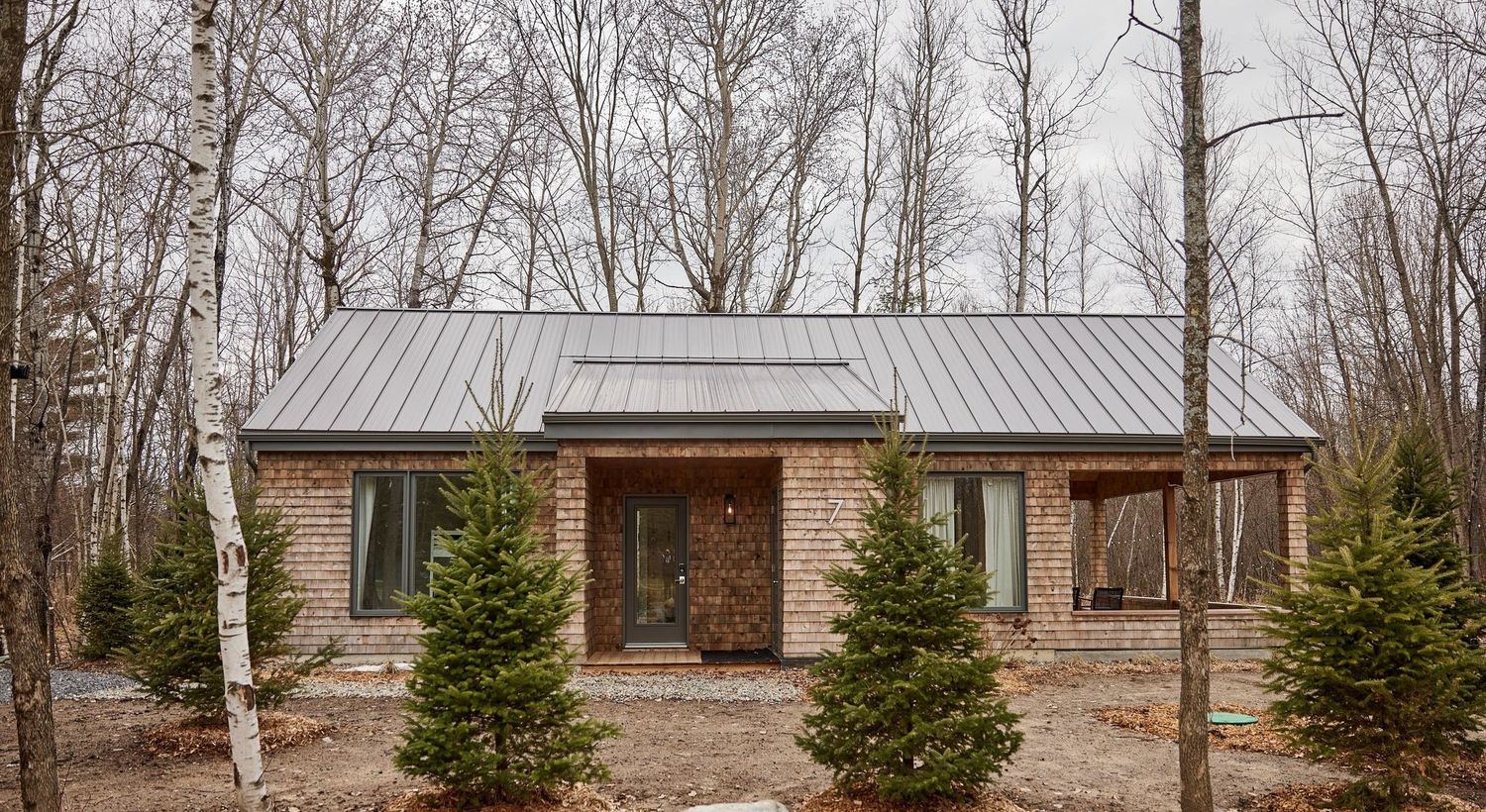 Chaleureuse construction construite en panneau SIP sur un terrain boisé du Lac Brome. Elle comporte 2 chambres à coucher et une salle de bain pour un total de 5 pièces sur un seul niveau de 865 pi.ca. On apprécie son design architectural unique en symbiose avec la nature. La cuisine, la salle à manger et le salon constituent une accueillante aire ouverte qui bénéficie d’une vaste fenestration, d’un foyer au gaz et d’un joli plafond cathédrale en bois. On a un coup de coeur pour sa terrasse recouverte et sa mezzanine ludique et magnifiquement aménagée. Tout a été penser pour favoriser les vues, le confort et le budget !
