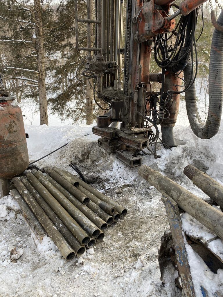 Terrain à proximité d’un petit ruisseau en bas du Mont Gabriel avec un sol rocheux non consolidé qui a nécessité l’utilisation de gaines d’acier sur plus de 60 pieds afin de nous permettre d’insérer nos boucles géothermiques sans obstacles. Les gaines d’acier sont retirés par la suite ce qui permet de réduire les couts. Projet réalisé avec Géo Consulterre.