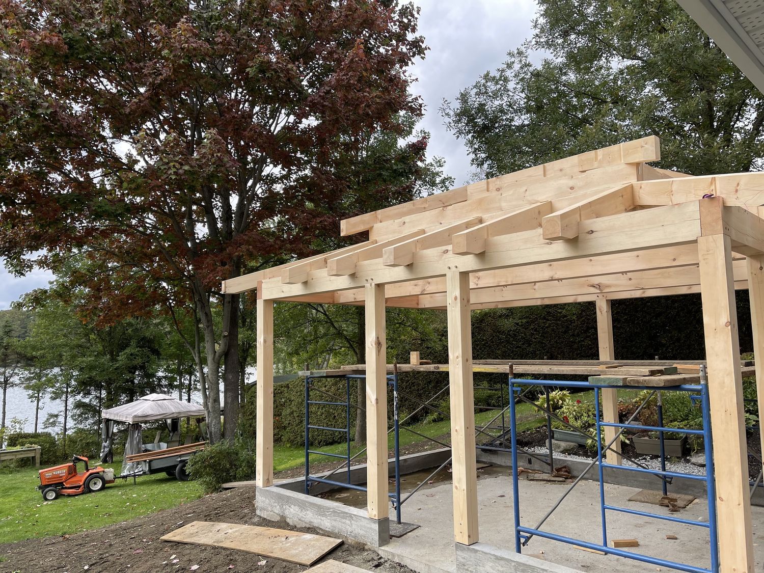 Construction d'un gazebo sur mesure en bois massif avec un ajout d'une marquise également en bois massif . Recherches associées Travaux - Aménagement paysager Sherbrooke (Estrie) Charpente massive Gazebo Charpenterie Timber frame
