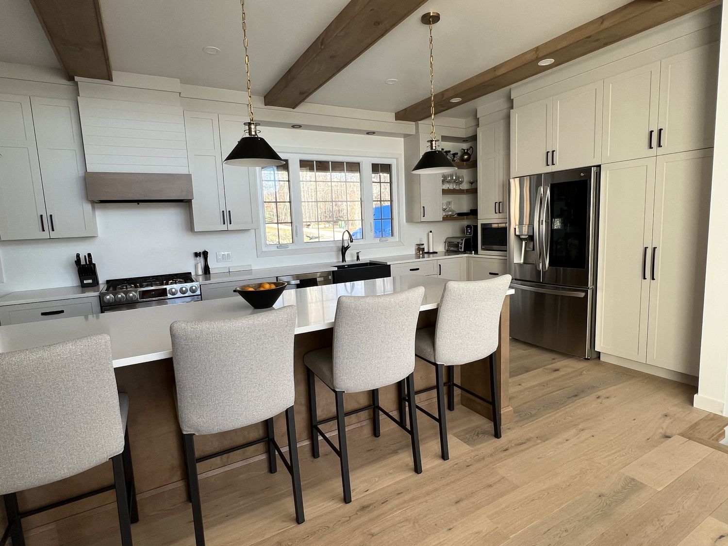 Rénovation majeure; ajout d'un étage et agrandissement côté lac en ossature de bois massif pré-teint. Recherches associées Cuisine Sherbrooke (Estrie) Rénovation majeure Ajout étage Charpente massive Charpenterie Agradissement