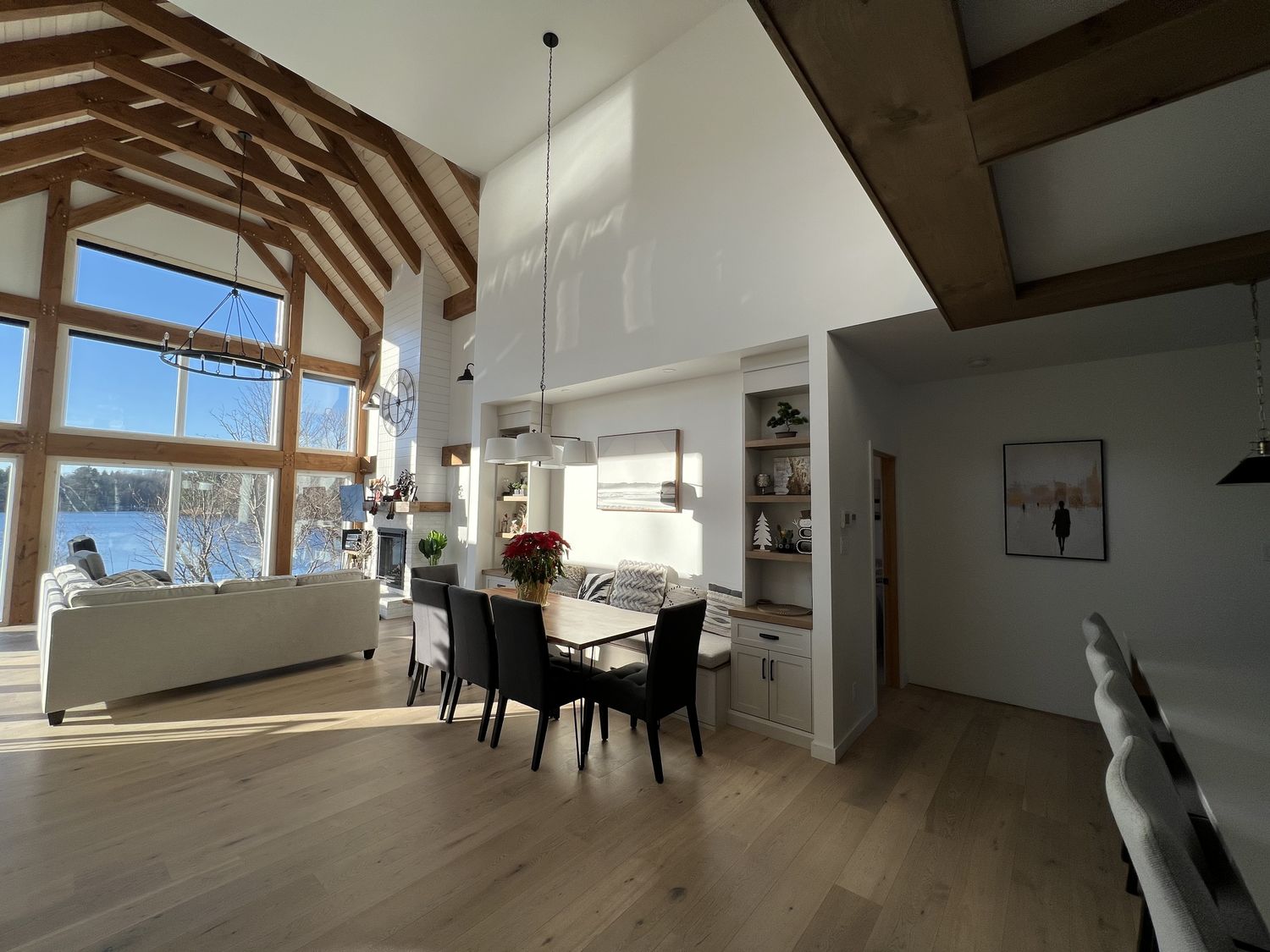 Rénovation majeure; ajout d'un étage et agrandissement côté lac en ossature de bois massif pré-teint. Recherches associées Salle à manger Sherbrooke (Estrie) Rénovation majeure Ajout étage Charpente massive Charpenterie Agradissement
