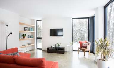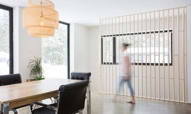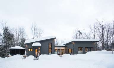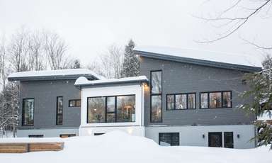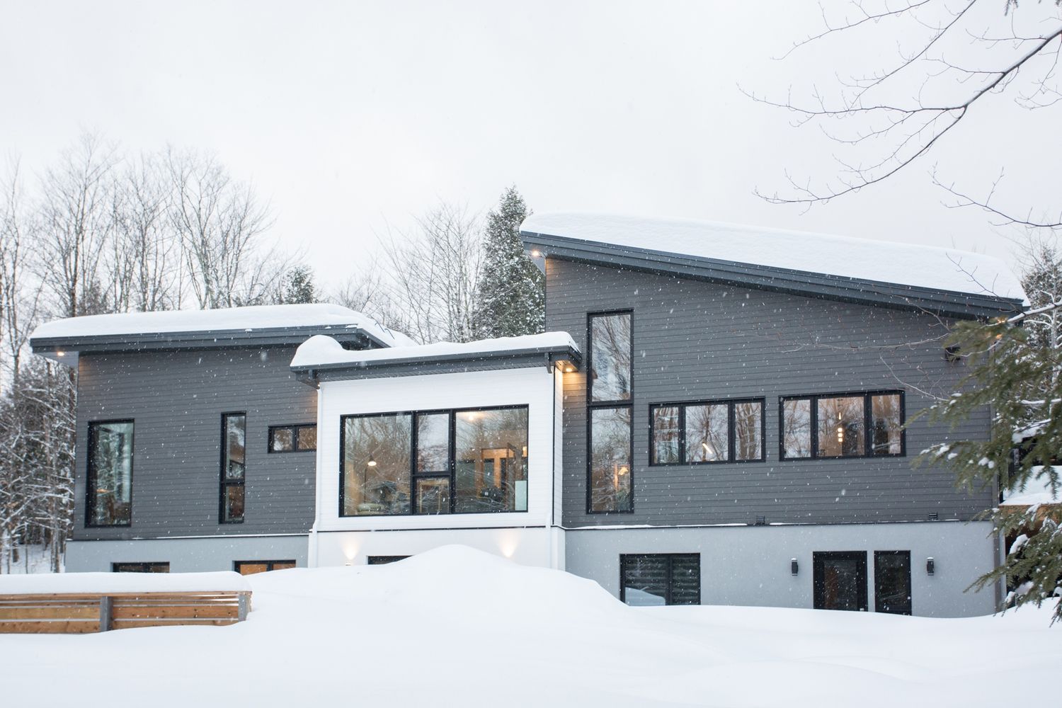 Cette bi générationnelle a été pensée avec soin pour accueillir tous les membres de la famille (même les animaux!) en procurant une intimité pour tous. Les finitions intérieures offrent un minimalisme élégant avec un plancher de béton chauffant sans plinthes et un plafond de cuisine avec bois franc. Cette magnifique demeure sur deux étages abrite au total 4 chambres et 3 salles de bain. À l’entrée (au centre, donnant accès aux deux côtés de la maison) on retrouve un espace multifonctionnel avec un coin lecture et deux bureaux; au-dessous, un gym personnel.