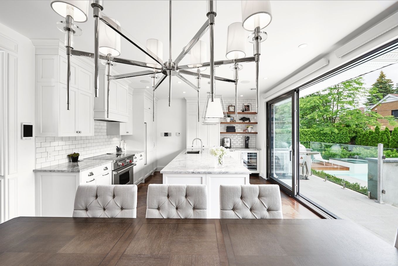 Avoir de la lumière naturelle toute l’année, une cour conviviale et une cuisine de rêve décloisonnée pour accueillir des invités était au sommet des priorités de nos clients. Sans oublier la création d’un espace bonifié qui allait plaire à ces passionnés de cuisine.