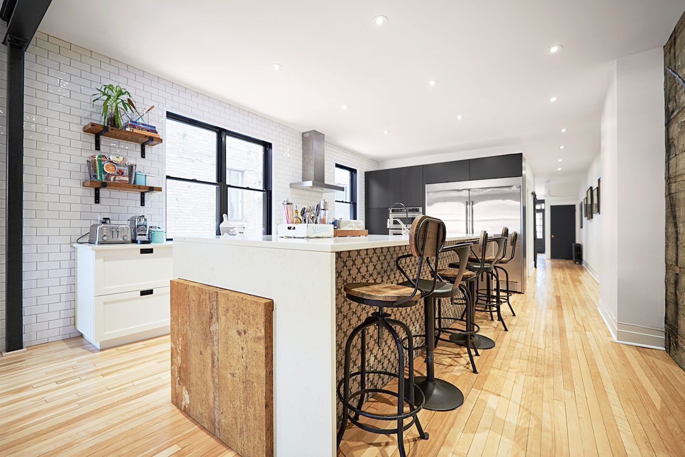 Nouvellement propriétaire, cette jeune famille souhaitait transformer son aire de vie au grand complet. Son condo, avec sa configuration cloisonnée typique du quartier Outremont, ne laissait pas entrer la lumière. L’emplacement de la chambre principale, très éloignée de celles des enfants, ne convenait pas à ses besoins. Préférant partager leurs repas autour d’un îlot, nos clients voulaient éliminer l’espace salle à manger pour poursuivre leur tradition familiale.