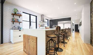 Nouvellement propriétaire, cette jeune famille souhaitait transformer son aire de vie au grand complet. Son condo, avec sa configuration cloisonnée typique du quartier Outremont, ne laissait pas entrer la lumière. L’emplacement de la chambre principale, très éloignée de celles des enfants, ne convenait pas à ses besoins. Préférant partager leurs repas autour d’un îlot, nos clients voulaient éliminer l’espace salle à manger pour poursuivre leur tradition familiale.