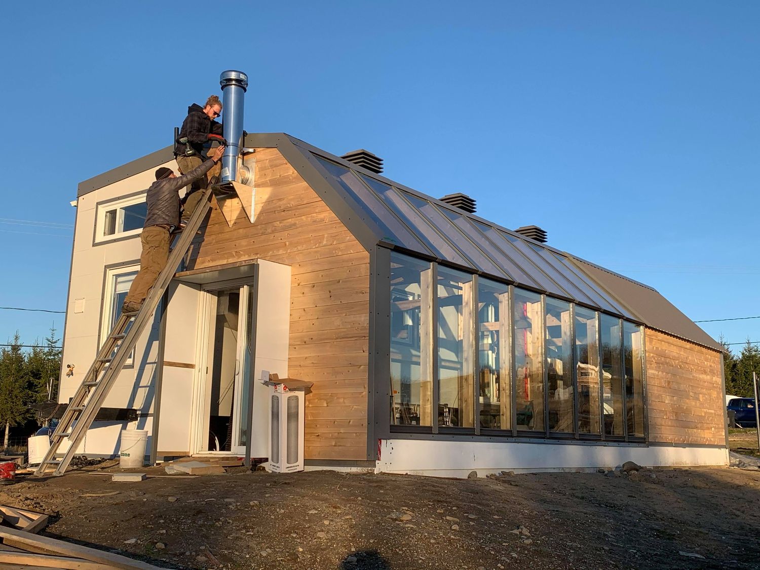 Le solarium est d’une superficie de 380 pi2 avec 65% de sa façade au sud de fenestré. Il a une longueur de 38 pi, une profondeur de 10 pi et 13 pi de hauteur. Le solarium est autoportant et est annexé à une petite maison sur roues. Cet espace évolutif et multifonctionnel a été conçu et construit par des membres de ALTE avec un budget d’environ 14 000$ en 75 jours de travail incluant la conception et la recherche des matériaux. Les matériaux tel que le bois local, les murs d’argile et le thermos recyclé, sont en grande majorité recyclés et biosourcés ce qui ajoute à la valeur écologique du projet. Plusieurs systèmes de gestion de l’environnement alternatifs ont été installés dans cet espace comme un système d’automatisation, un système de visualisation de plusieurs températures avec alarmes par texto, un plancher radiant à l’eau chaude, un système d’aérothermie (géothermie à air pulsé) et un système de ventilation naturelle par ventilateur passif.