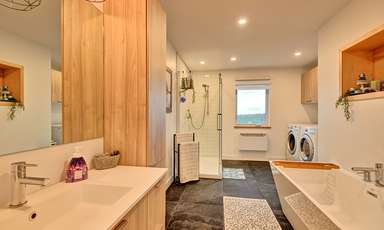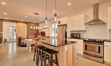 • Logement principal 7 1/2 sur 2 étages, salle d'eau et salle de bain, bain autoportant, douche verre. Vestibule avec walk-in, garde-manger walk-in, îlot central, comptoirs granite, terrasse 12'x16'.