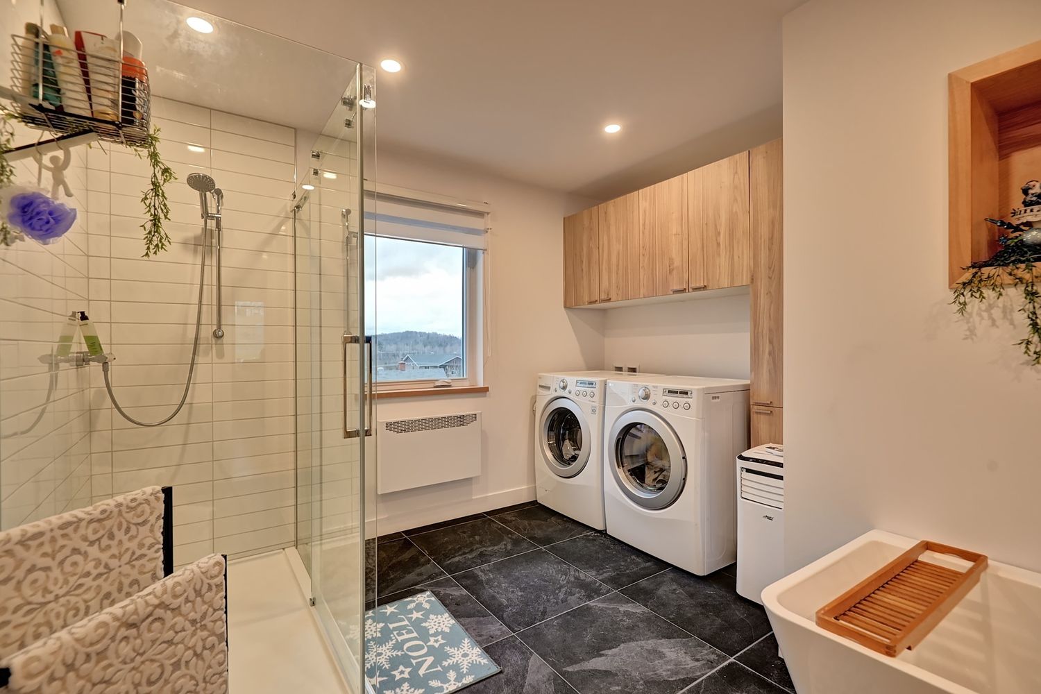 Buanderie à même la vaste salle de bain. Recherches associées Salle de bain Sherbrooke (Estrie) Écoénergétique Intergénération École des Enfants de la Terre Propriété à revenu