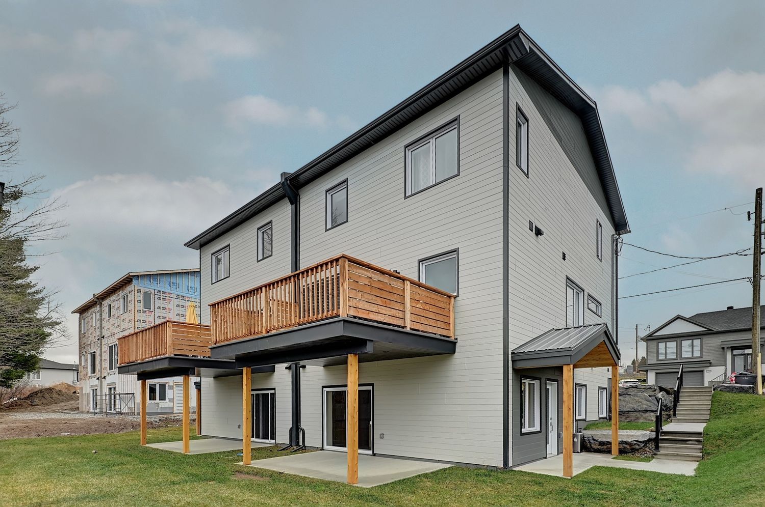 Vue de l'aménagement extérieur Recherches associées Cour arrière Sherbrooke (Estrie) Écoénergétique Intergénération École des Enfants de la Terre Propriété à revenu